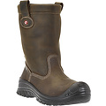 Zomerlaars Montana veiligheidslaars met bovenwerk van bruin, gevet nubuckleer dat waterafstotend is, composiet veiligheidsneus en PU/PU loopzool. Deze schoen voldoet aan de S3 normering